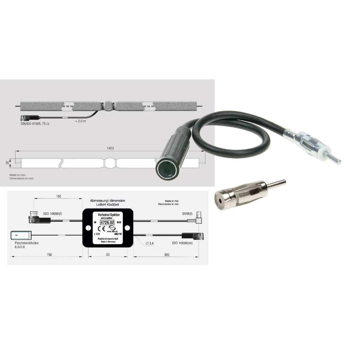 Antennen- Einbausatz mit Dipolantenne AM/FM passiv / DAB+ durch Antennensplitter für PKW und Wohnmobil