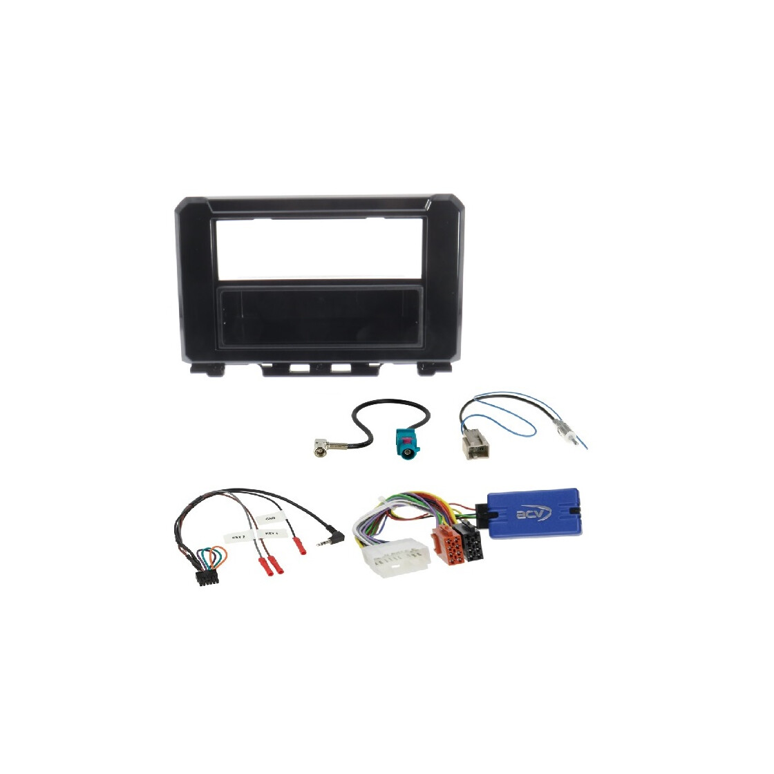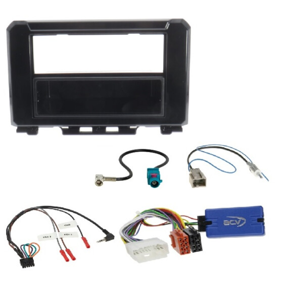 Dieser 1DIN Autoradio- Einbausatz besteht aus einer Radioblende, einem Lenkradinterface und Antennenadapter AM/FM + DAB und ist passend für einen Suzuki Jimny ab 2018 mit Lenkradfernbedienung